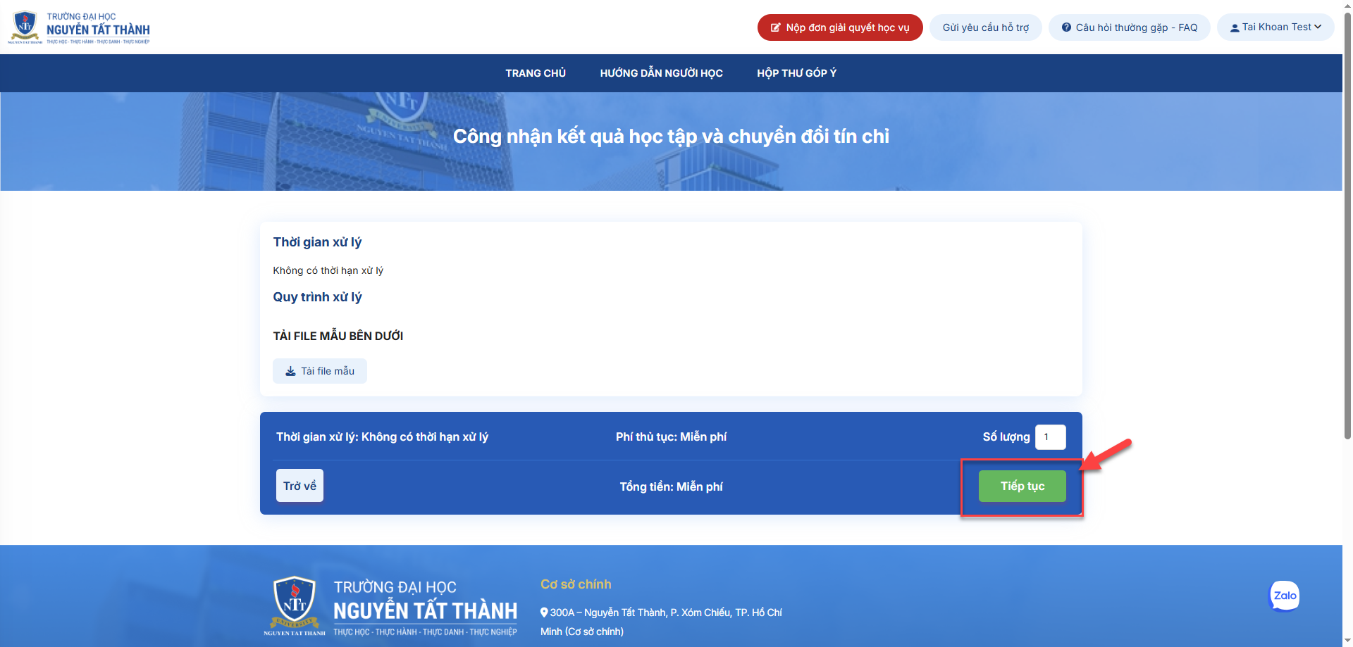 Bước 1: - Đăng nhập vào cổng hotro.ntt.edu.vn - Nhấn vào nút "Nộp đơn giải quyết học vụ" |